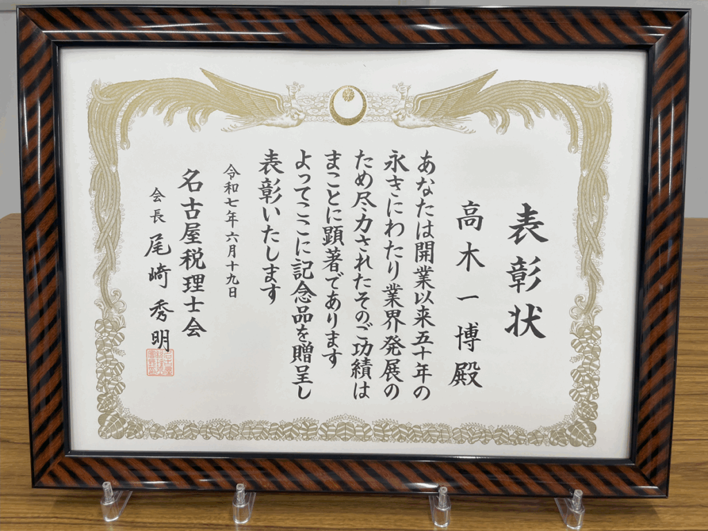 Categories お知らせ 創業者(現 相談役)髙木一博が開業以来50年の功績を表彰されました。 Post author By takagikaikei Post date 2025年9月12日 創業者(現 相談役)の髙木一博は、令和7年6月19日に名古屋税理士会から開業以来50年の業界発展に尽力した功績を、表彰して頂きました。 ← 令和4年 第66回 国府宮はだか祭り写真コントテストにて最優秀賞を受賞